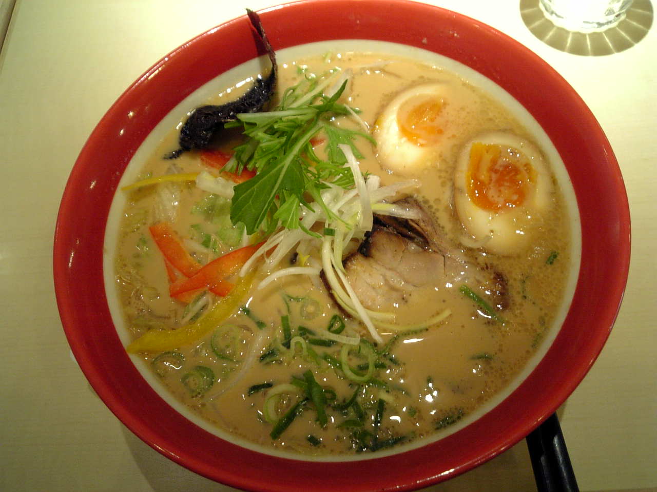 とんこつにしてはあっさり目でクリーミー。味は至って普通。