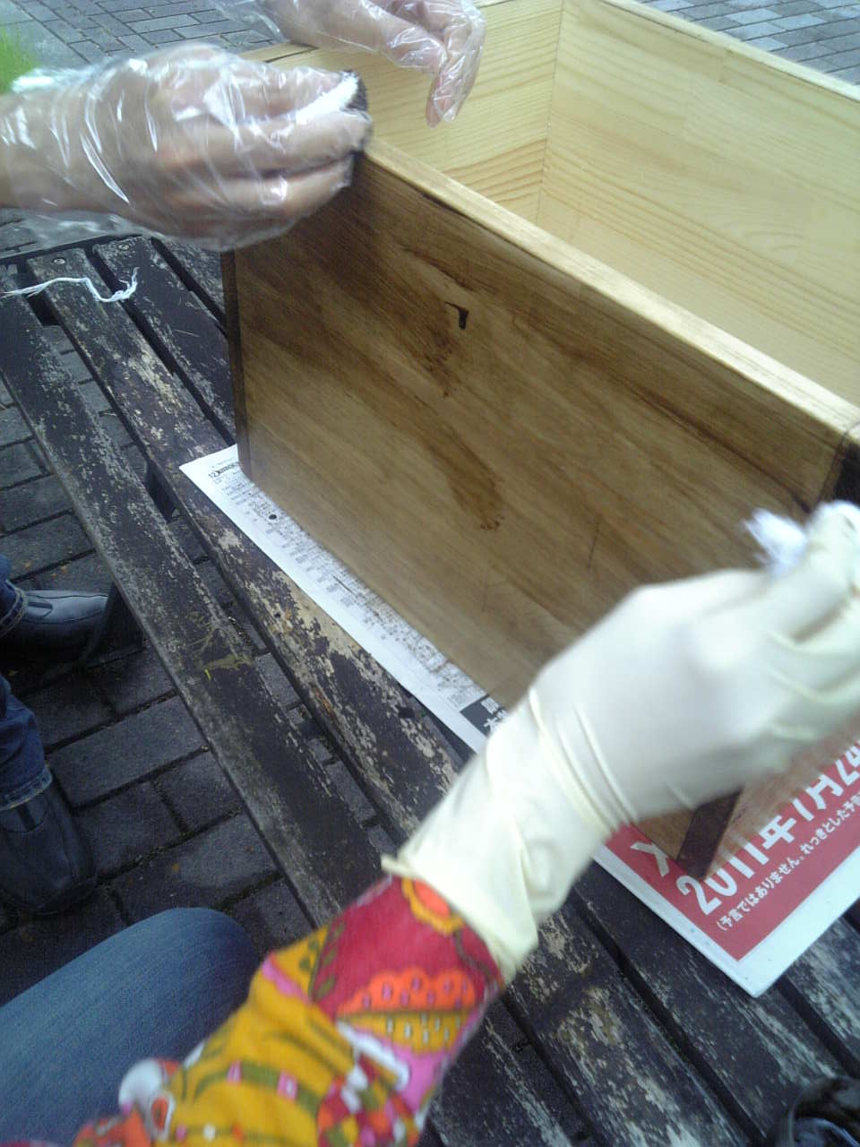 朝、コーナンでニスとやすり買い足し+ダイソーで鈴購入。