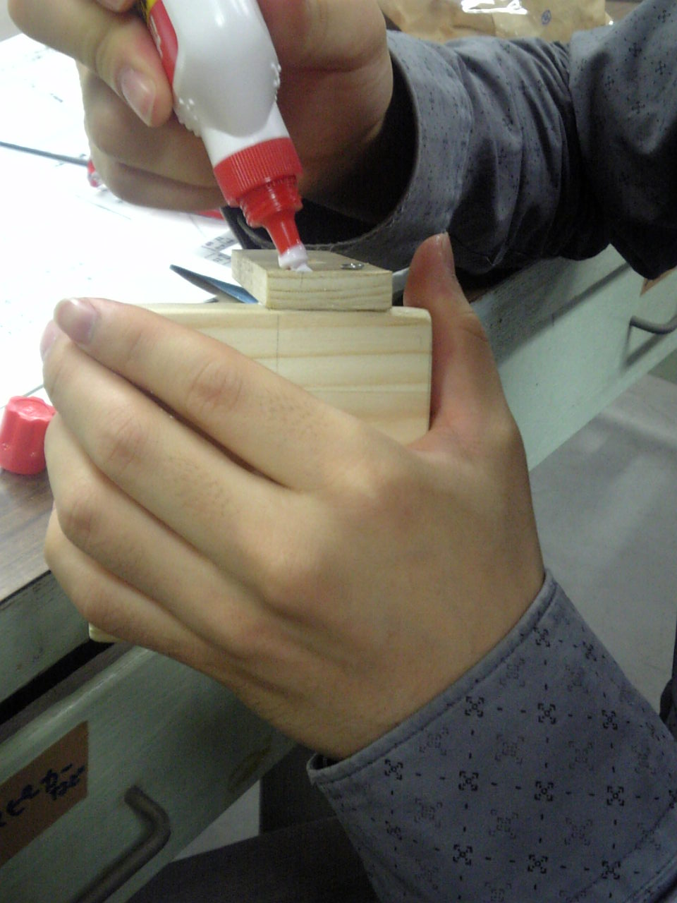 上部の木材もボンドで固定し、螺旋の力をぶち込んだら、